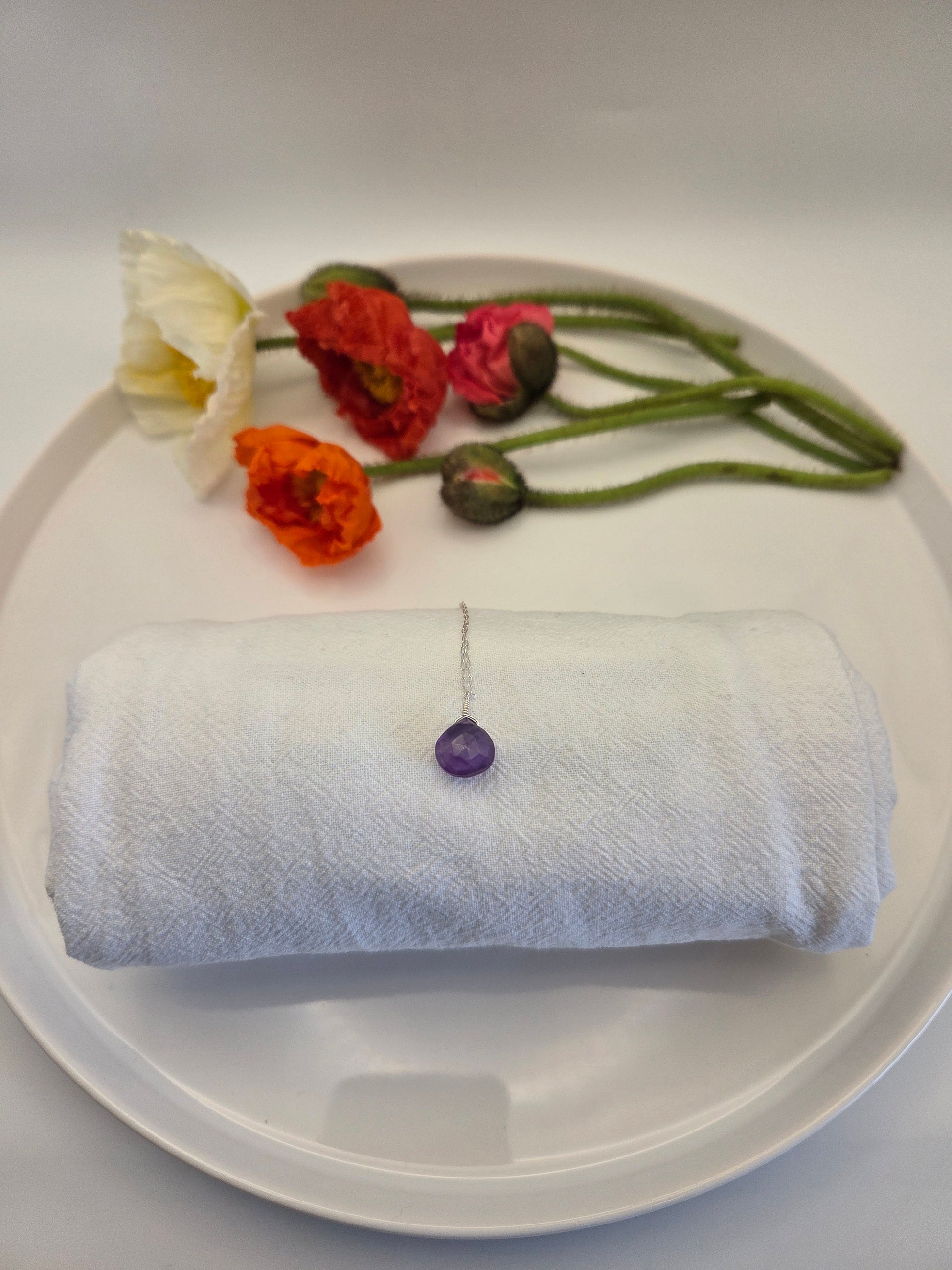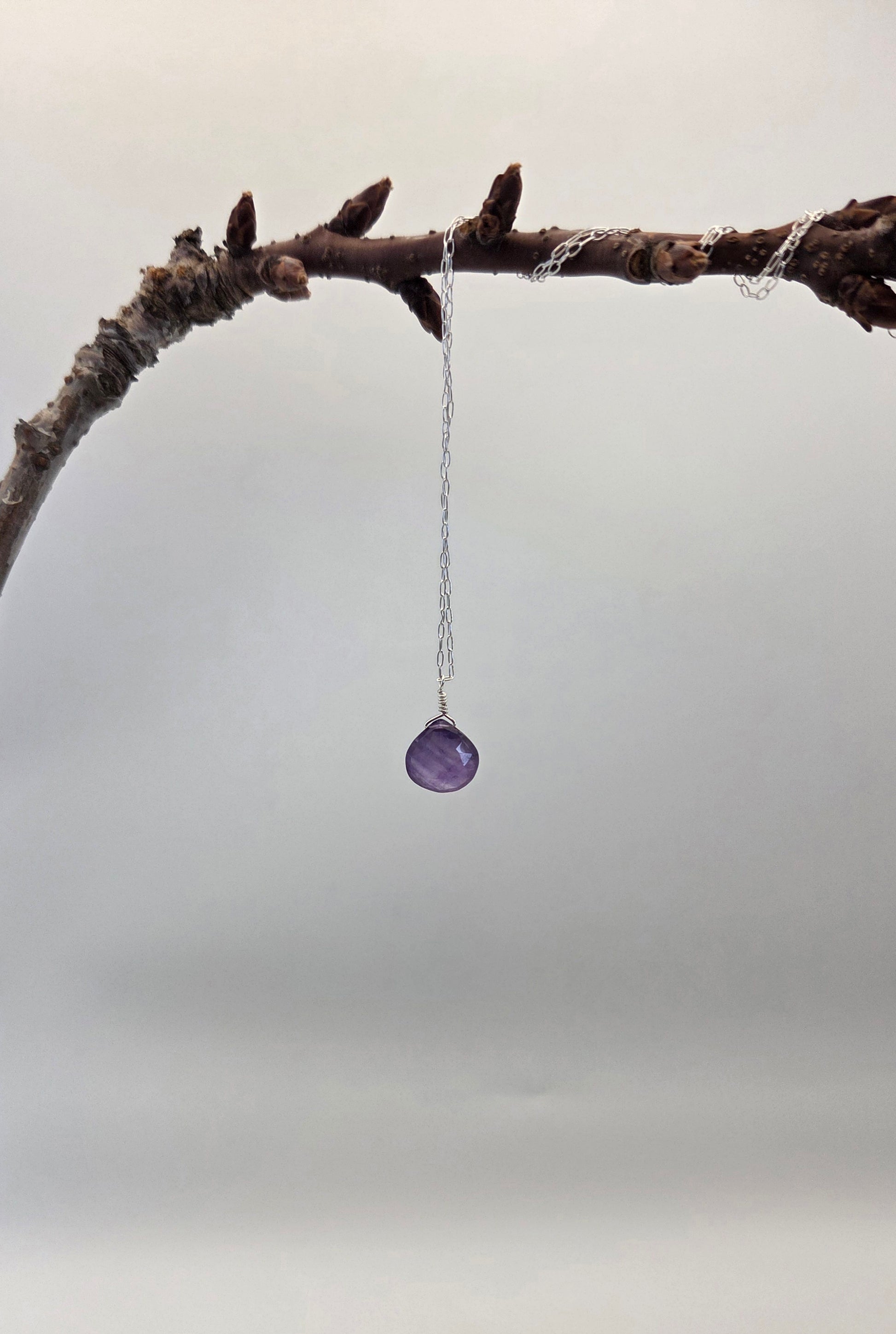 Dainty amethyst pendant on a delicate sterling silver chain. Handmade in California ☀️