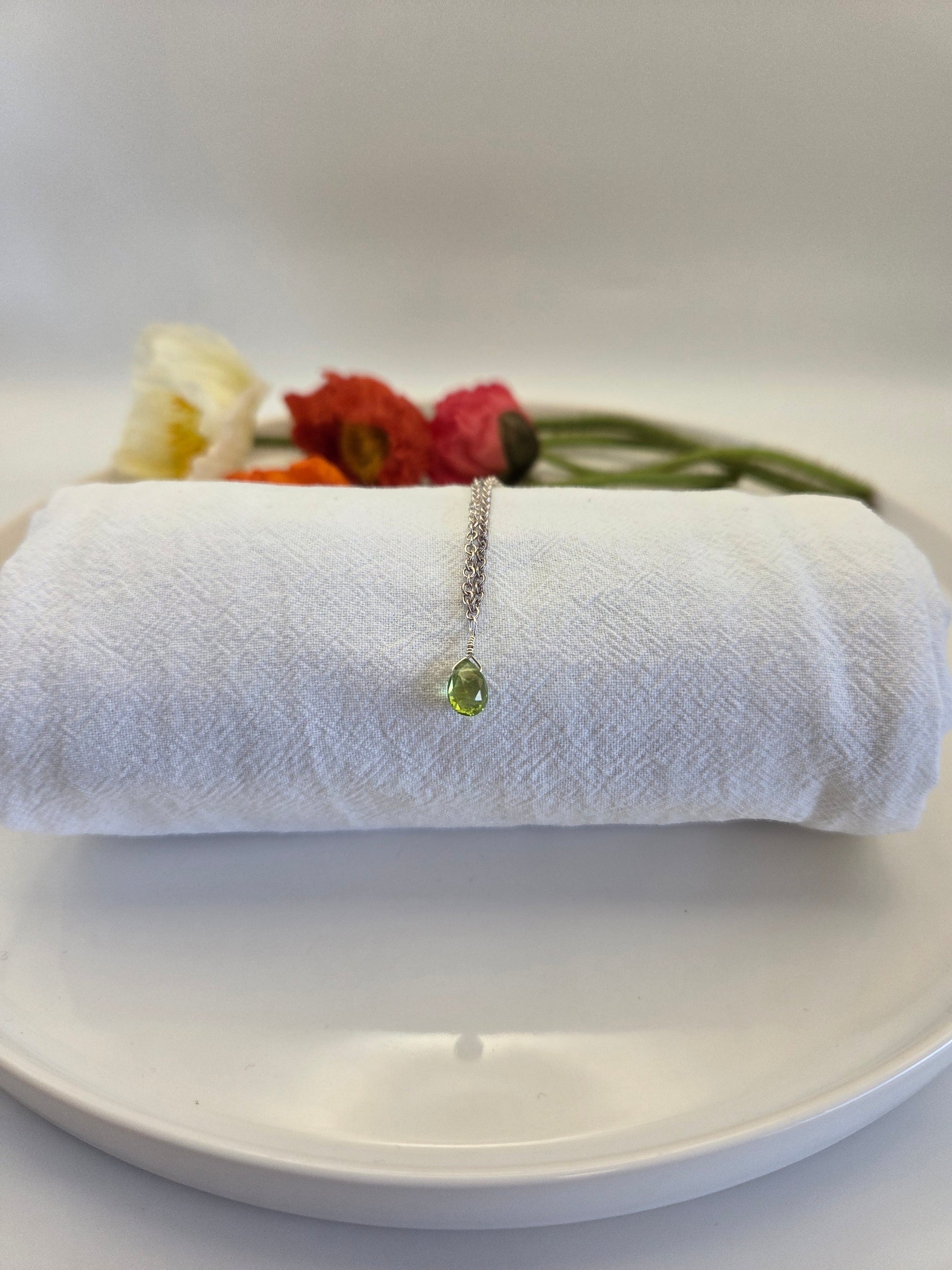 Dainty peridot pendant on a sterling silver rolo chain. Handmade in California ☀️