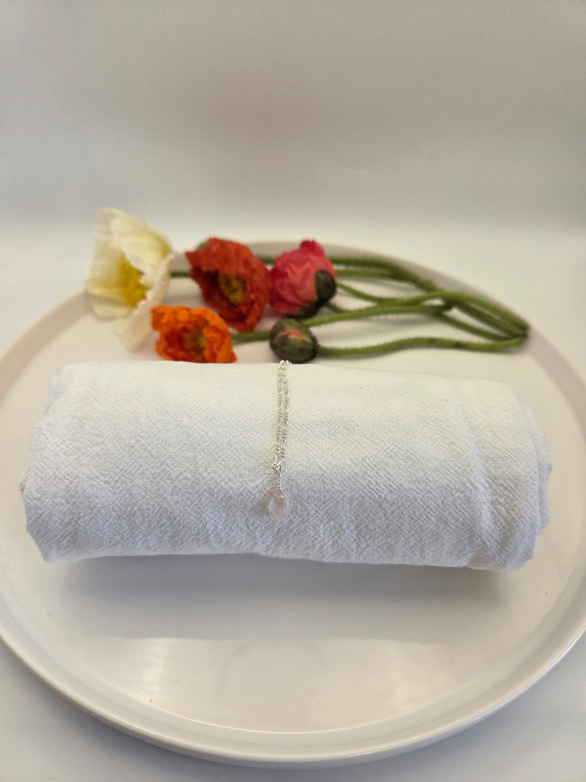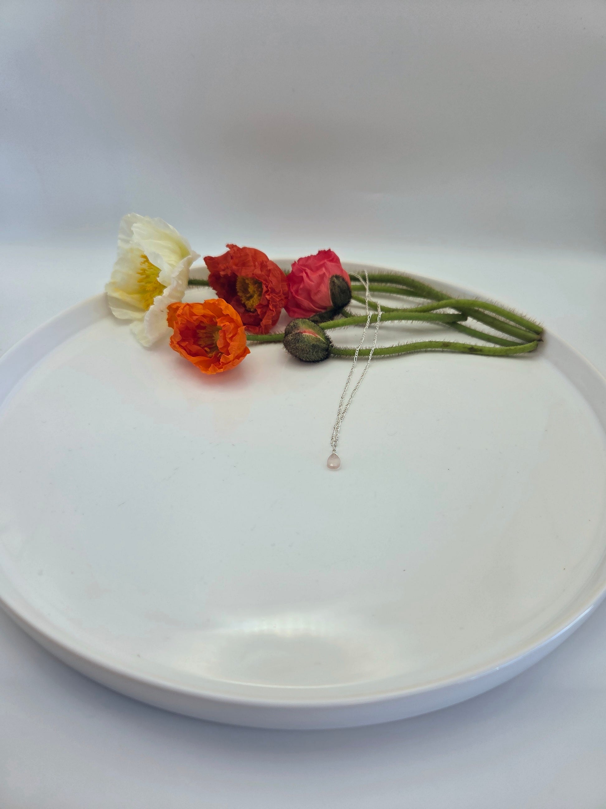 Dainty rose quartz pendant on a sterling silver figaro chain. Handmade in California ☀️