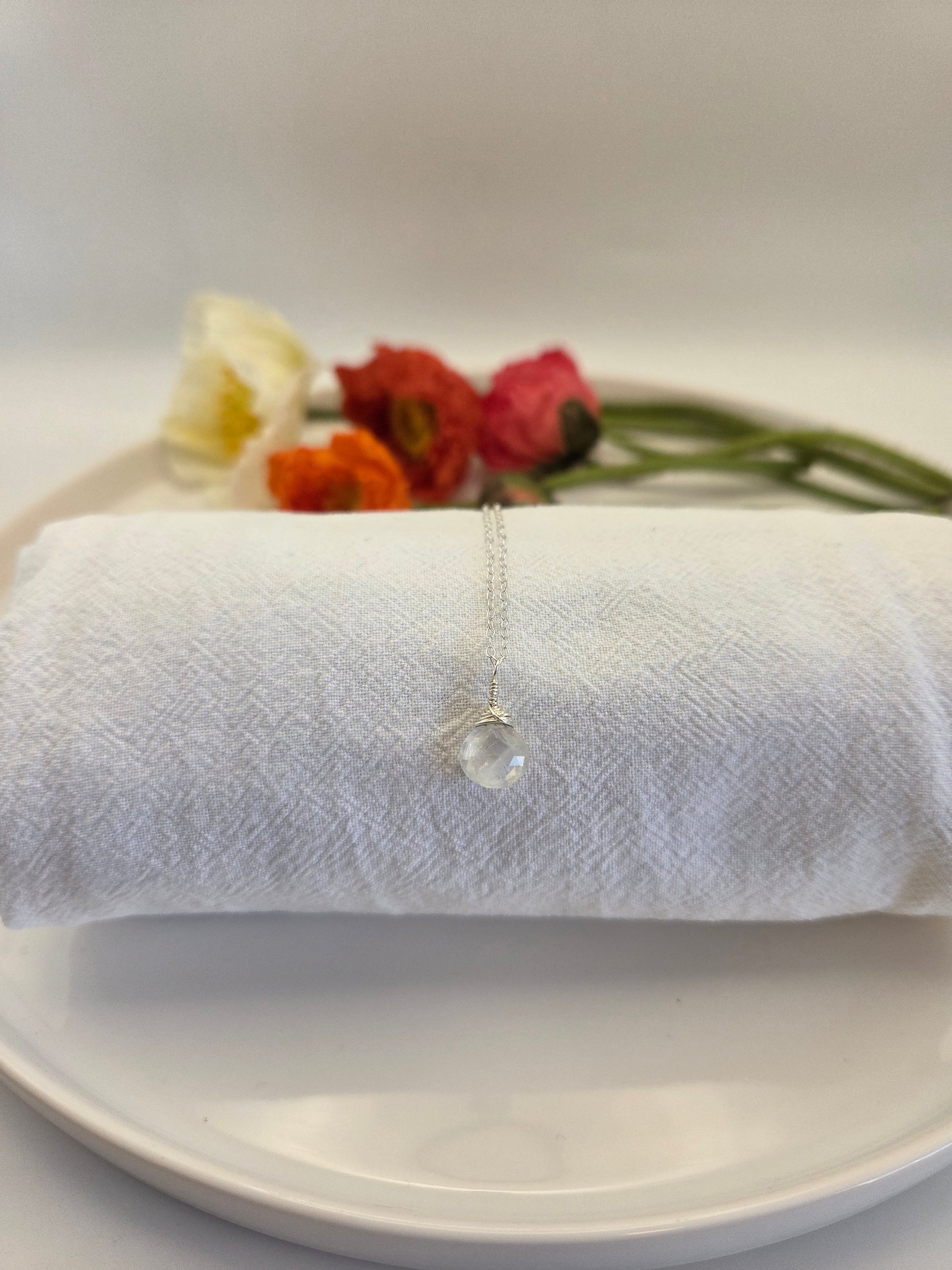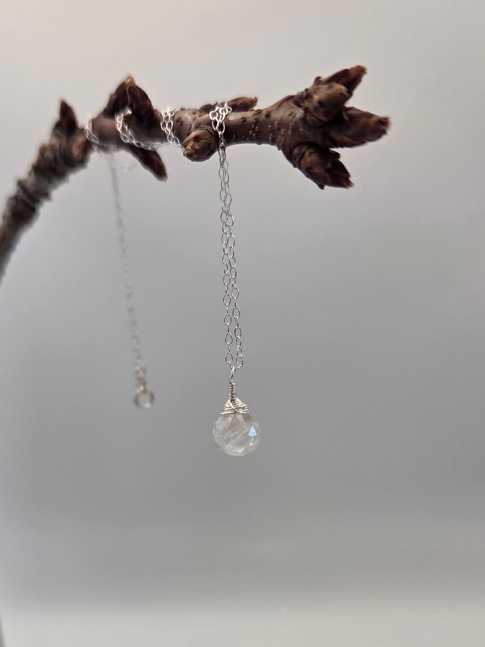 Dainty rainbow moonstone pendant on a delicate sterling silver chain. Handmade in California ☀️